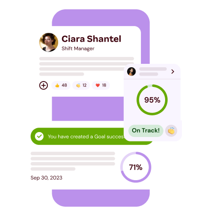 Get a bird’s-eye view of outstanding tasks, induction policies and certifications. Set goals and track your success with a company news feed and team shoutouts.